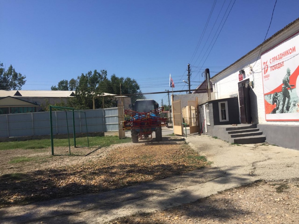 Сегодня в с. Аксай проводили дезинфекцию улиц и социально-бытовых объектов