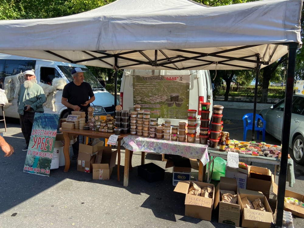 Торгово-развлекательная площадка расположилась на ул. Пушкина и собрала сельхозпроизводителей и представителей перерабатывающих предприятий из различных городов и районов Дагестана. Они представили широкий спектр экологически чистой мясной, молочной и другой продукции собственного производства по ценам значительно ниже рыночных. Ярмарку посетили первый заместитель министра сельского хозяйства и продовольствия РД Шарип Шарипов, заместитель министра Эмин Шайхгасанов и другие лица. Приветствуя участников и гостей мероприятия, Шарип Шарипов отметил, что ярмарка приурочена к прошедшему Дню единства народов Дагестана, а также и к 100-летию со дня рождения поэта Расула Гамзатова. По традиции с ельхозтоваропроизводители Хасавюртовского района приняли активное участие и представили широкий ассортимент продукции.