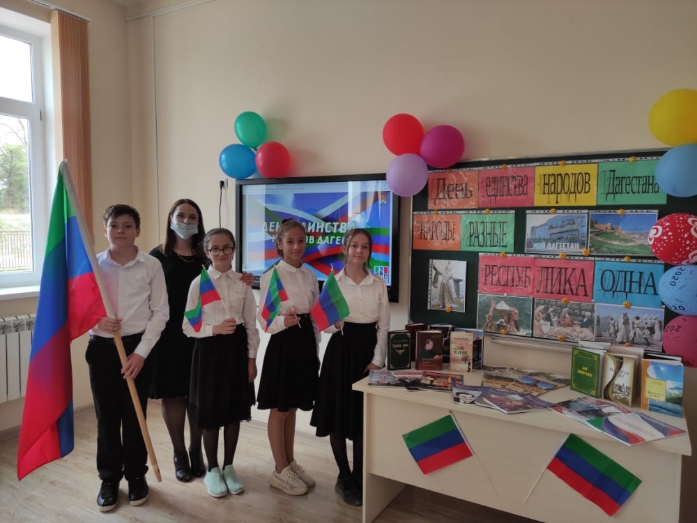 « 15 сентября в Дагестане отмечают знаменательный праздник – День единства народов Дагестана. Дагестан – один из самых интересных в этническом отношении регион, нигде в мире на такой маленькой территории не проживает такого количества народов. День единства народов Дагестана – праздник, который символизирует дружбу и братство, неразрывную связь времен и поколений. Его основное богатство – многонациональный дружный народ. Учащиеся читают стихи, поют песни про родной Дагестан. На классных часах идут мероприятия «Возьмёмся за руки, друзья!». «Мы разные, но у нас много общего», библиотечные уроки «День Единства народов Дагестана», конкурс рисунков на тему «Моя родная земля - Дагестан» - отмечают учителя школ в ходе уроков.