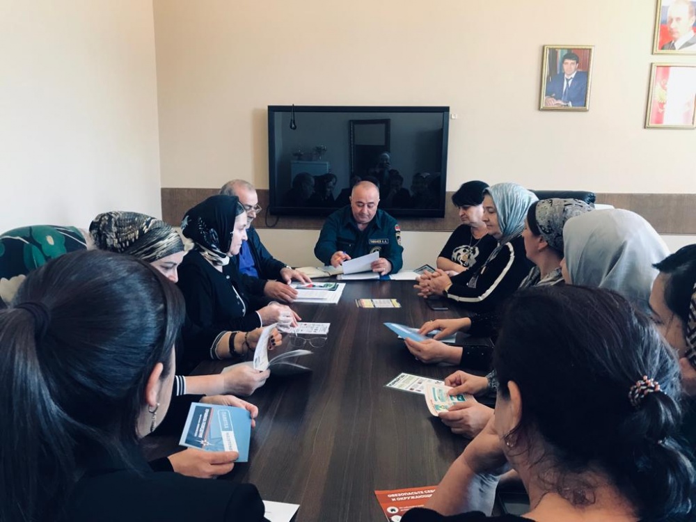 Главный специалист МКУ «Управление по делам ГО ЧС Хасавюртовского района» Абдурашид Гамзатов ознакомил основными понятиями в области гражданской обороны. Подробно остановился на порядке оповещения и доведения сигнала гражданской обороны «ВНИМАНИЕ ВСЕМ!» с информацией: о воздушной тревоге, химической тревоге, радиационной опасности, угрозе катастрофического затопления. Беседа с преподавательским составом проведена с целью обучения самостоятельно, быстро и безошибочно ориентироваться при ЧС различного характера.