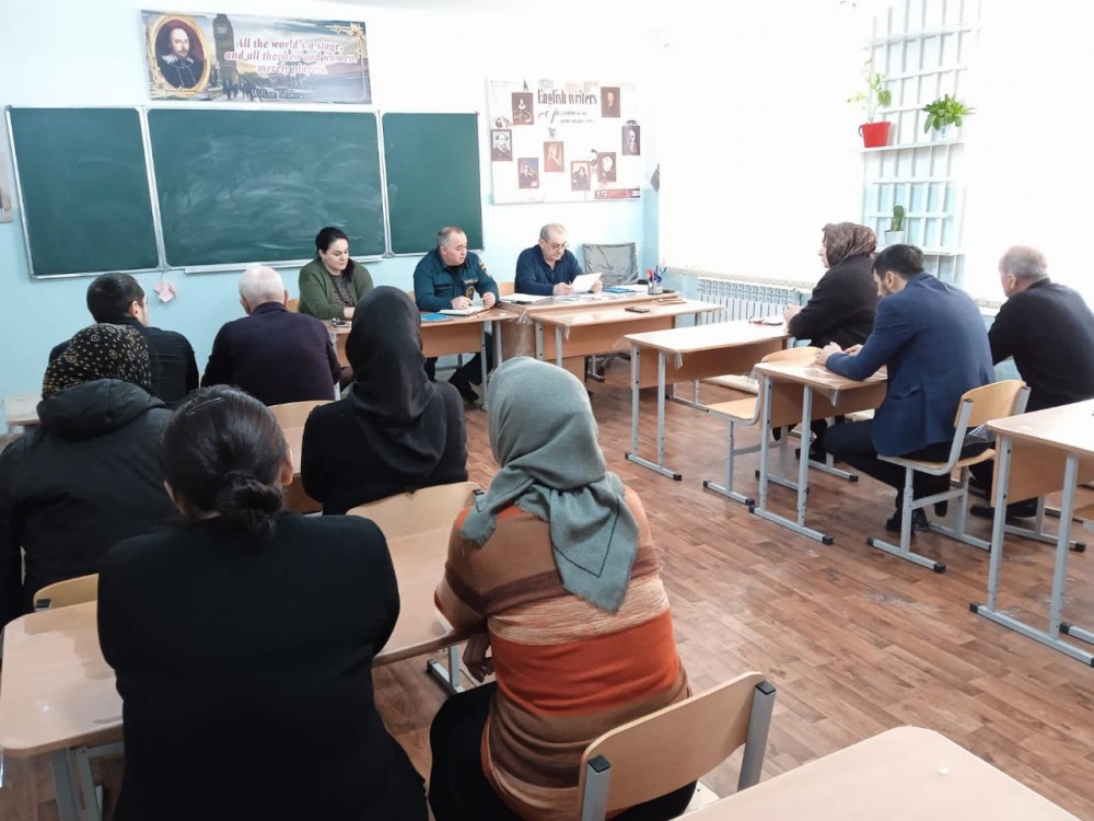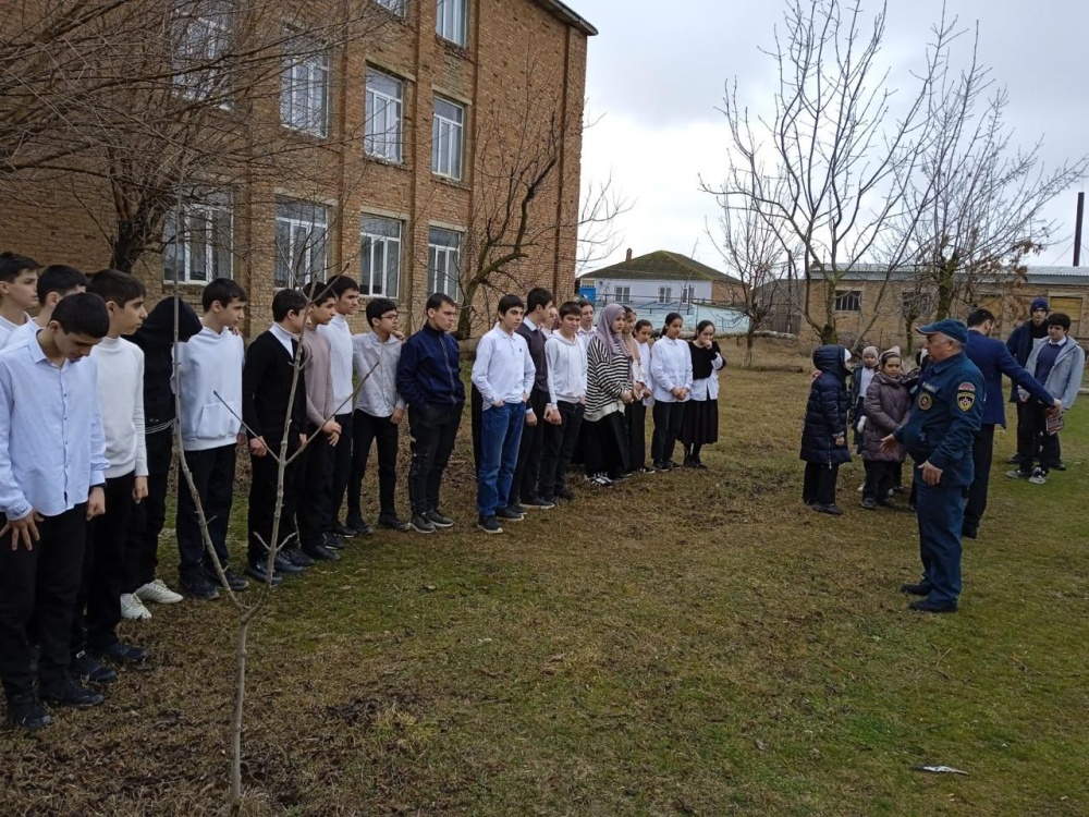 Начальник отдела ГО МКУ «Управление по делам ГО и ЧС Хасавюртовского района» Абдулнасир Тавбиев провел инструктивную беседу с руководством и педагогическим коллективом по правилам поведения при ЧС различного характера (пожар, землетрясение) и при угрозе или возникновении террористических актов, а также принял участие при проведении практической (учебной) эвакуации учащихся из здания школ. Главный специалист МКУ «Управление по делам ГО ЧС Хасавюртовского района» Абдурашид Гамзатов ознакомил присутствующих с основными понятиями в области гражданской обороны.