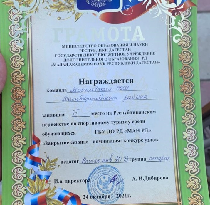 «Проработанные в течение года навыки и умения юные туристы смогли продемонстрировать в первенстве, пройдя различные конкурсные испытания» - подчеркивает руководитель регионального центра Арсен Хайбулаев. По итогам первенства команда МБОУ «Могилёвская СОШ им. Н.У. Азизова» стала призёром и заняла 3 призовое место среди 13 участников. Призеры соревнований награждены Дипломами, медалями и кубками.