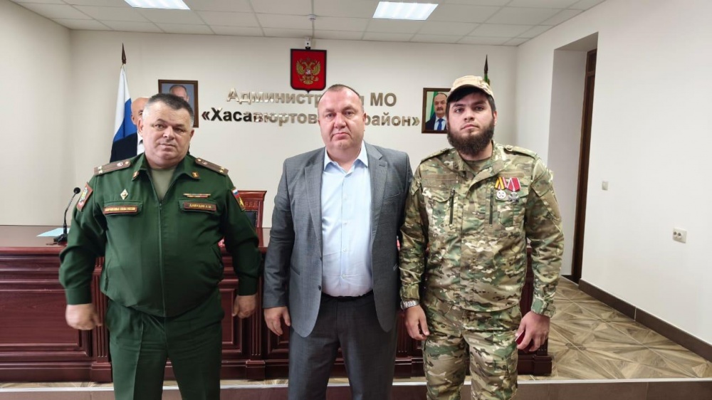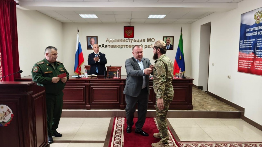 Сегодня, в администрации района прошло очередное плановое совещание аппарата и актива МР, с участием руководителей территориальных, республиканских и федеральных органов власти, под председательством и.о Главы МР Багаутдина Мамаева. Совещание начало свою работу с приятной миссии, где участнику СВО Хасавюртовского района Исламу Койтемирову были вручены государственные награды, «Орден Мужества» и Медаль «За воинскую доблесть» II степени МО РФ. Торжественную церемонию провели Багаутдин Мамаев и Военком Абакар Давудов. В поздравлении была выражена сердечная благодарность за мужество, героизм и гражданскую позицию в деле защиты стратегических интересов Отечества.