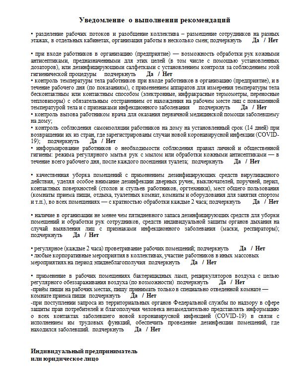 Руководителю организации необходимо заполнить уведомление установленной формы Роспотребнадзором РД (прилагается).