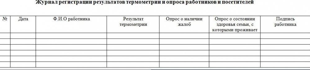 Руководителю организации необходимо завести журнал регистрации результатов термометрии и опроса работников и посетителейустановленной формы Роспотребнадзором РД (прилагается).