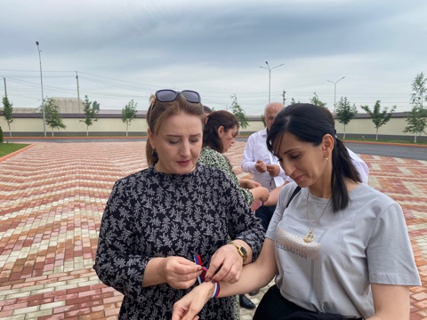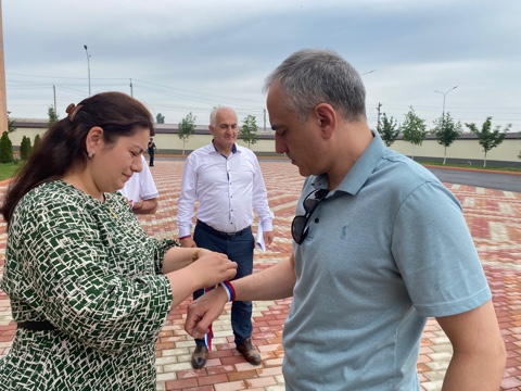 / В администрации Хасавюртовского района праздничные мероприятия ко Дню России отметили акцией по раздаче работникам ленточек Триколор