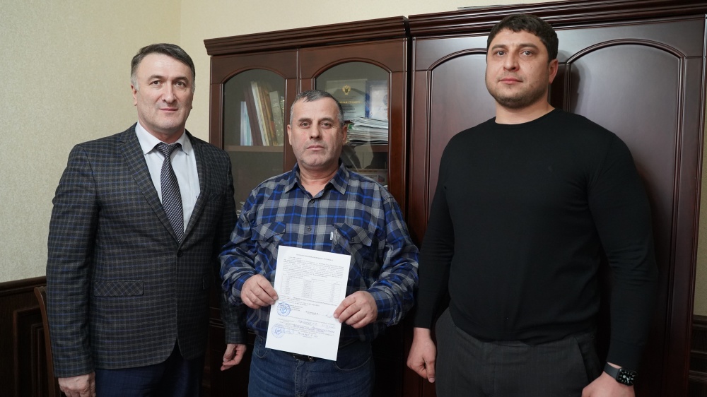 В администрации Хасавюртовского района состоялось торжественное вручение жилищного сертификата ликвидатору последствий аварии на Чернобыльской АЭС