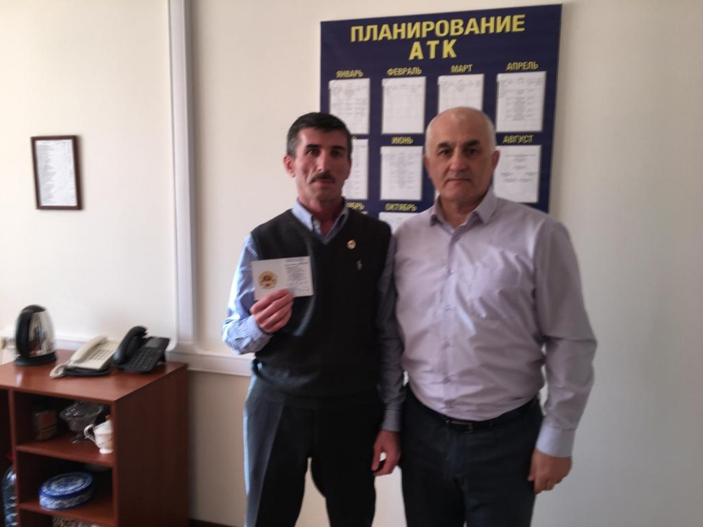 11 января в администрации района, начальник отдела ФК, спорта и делам молодежи Ахмед Исаков, вручил золотой значок и удостоверение Всероссийского физкультурно-спортивного комплекса ГТО Министерства спорта РФ начальнику отдела по антитеррористической работе Администрации МР Исрапилу Гусейнову.