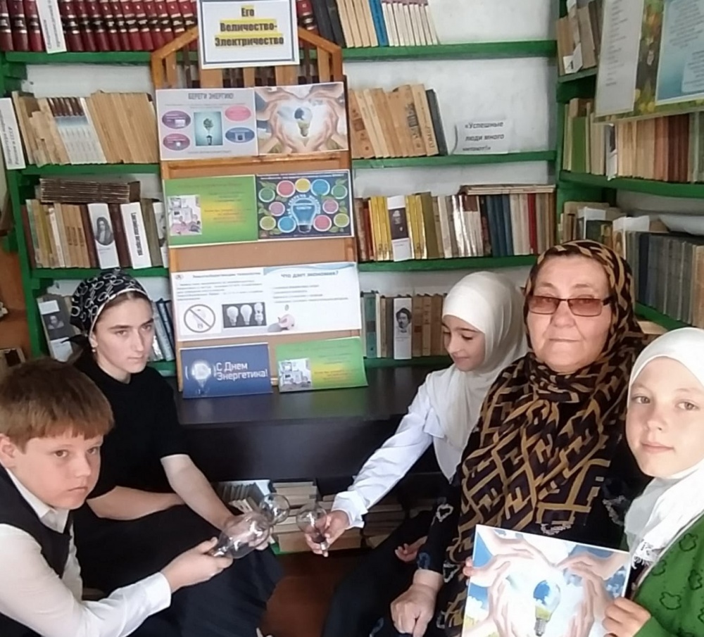 В целях популяризации ценностей энергосбережения, бережного отношения к природным ресурсам и экологического просвещения проводятся массовые мероприятия в сельских библиотеках. Таким образом в с Октябрьское проведена викторина на тему «Его Величество Электричество." Читателям говорили о том, что развитие интереса к явлениям и предметам в окружающем мире, о безопасном обращении с электричеством, об электричестве и электроприборах, о пользе и опасности электричества.В с Борагангечу зав. библиотекой Эсханова Р провела Интеллектуальную игру на тему: "Что сегодня сбережешь-завтра пригодится". Речь шла об электричестве и электроприборах, о пользе и опасности электричества. Читатели очень актуально отвечали на вопросы. Соревновались две команды : « Свет» и «Тепло». После недолгих вопросов ответов, по правильным ответам победила команда "Свет".