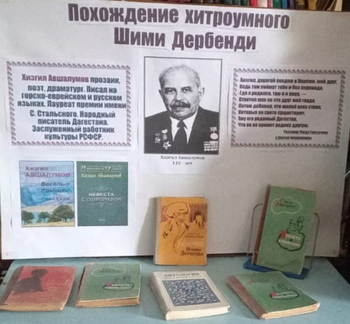 В библиотеках поселений прошли Памятные мероприятия, посвященные 110 – летию татского прозаика и драматурга Хизгила Авшалумова, прозаика, драматурга, автора книг, которые вошли в духовную жизнь нескольких поколений. Так в библиотеках селений Хамавюрт, Куруш (детская библиотека), Муцалаул, прошли литературные часы: « Жемчужина народной мудрости», « Мудрец из Нюгди», где юные читатели узнали много интересного о жизни и творчестве известного дагестанского прозаика, поэта и драматурга. Особое место в творчестве Хизгила Авшалумова, занимает сатирика, юмористические рассказы, где в образе Шими Дербенди, показаны обычаи и традиции народа. Также были обсуждены книги « Возмездие», «Фамильная арка», «Сказание о любви», в которых писатель отразил обычаи, традиции и быт своего народа.