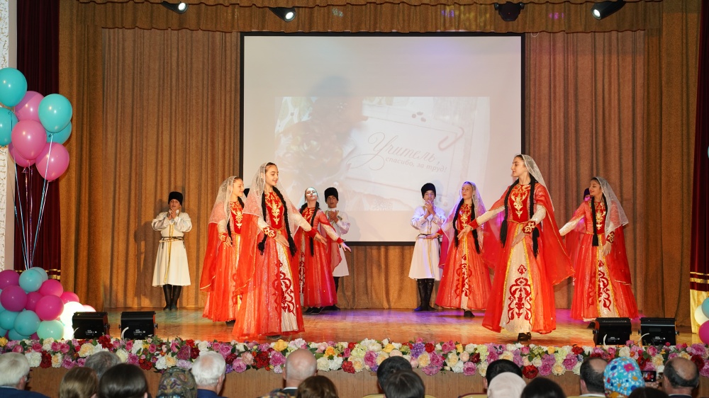 Накануне в Центре традиционной культуры народов России Хасавюртовского района, состоялось торжественное мероприятие, посвященное Дню учителя. В праздничном мероприятии приняли участие заместитель главы администрации МО «Хасавюртовский район» Исмаил Шаипов, председатель Собрания депутатов МО "Хасавюртовский район" Магомед Лабазанов, председатель Хасавюртовского райкома профсоюза работников образования Калсын Акгёзов, аппарат Управления образования района, методисты, руководители и педагогические работники образовательных учреждений, заслуженные ветераны образования.Открыли мероприятие с гимна Российской Федерации и Республики Дагестан. Официальную часть мероприятия начал первый заместитель главы администрации Хасавюртовского района Исмаил Шаипов, который в своей поздравительной речи подчеркнул особую значимость профессии учителя в обществе. Он отметил, что День учителя - особый праздник, и его празднуют все люди, потому что кем бы он ни был, строителем, врачом, инженером, прежде всего, он в свое время был учеником.