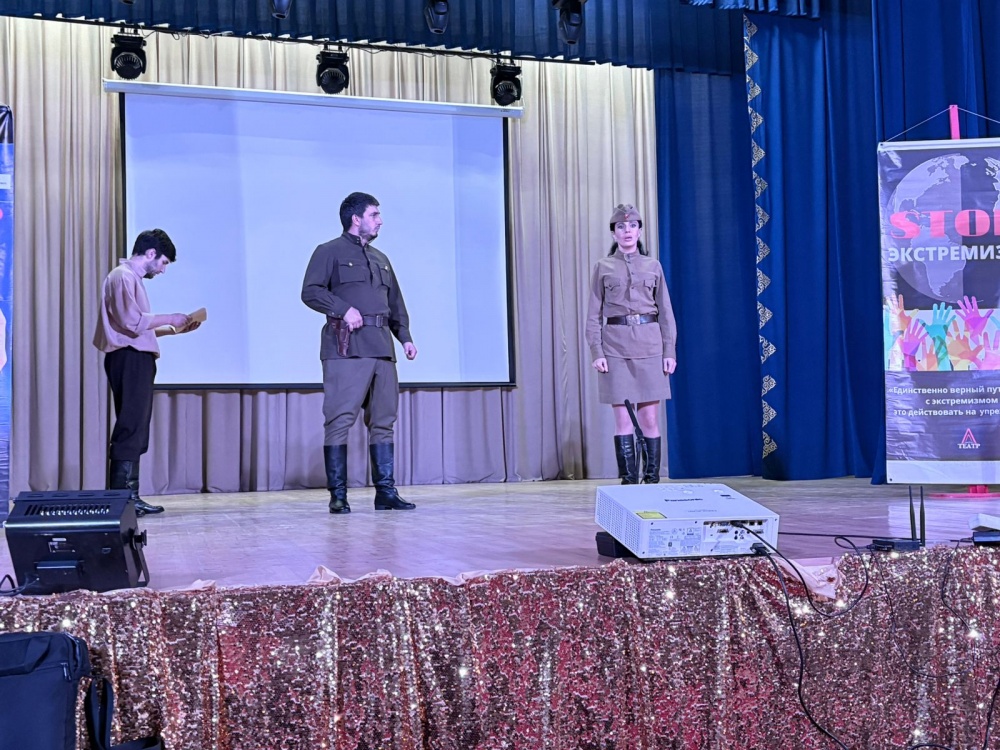 Учащимся были показаны отрывки из спектаклей «Амет-хан Султан» и «Невыплаканные слезы» по фронтовым дневникам прозаика, публициста и поэта Эфенди Капиева, посвященные событиям Великой Отечественной войны, напомнившие собравшимся о мужестве и героизме советских людей разных национальностей, несших на своих плечах все тяготы военного времени.