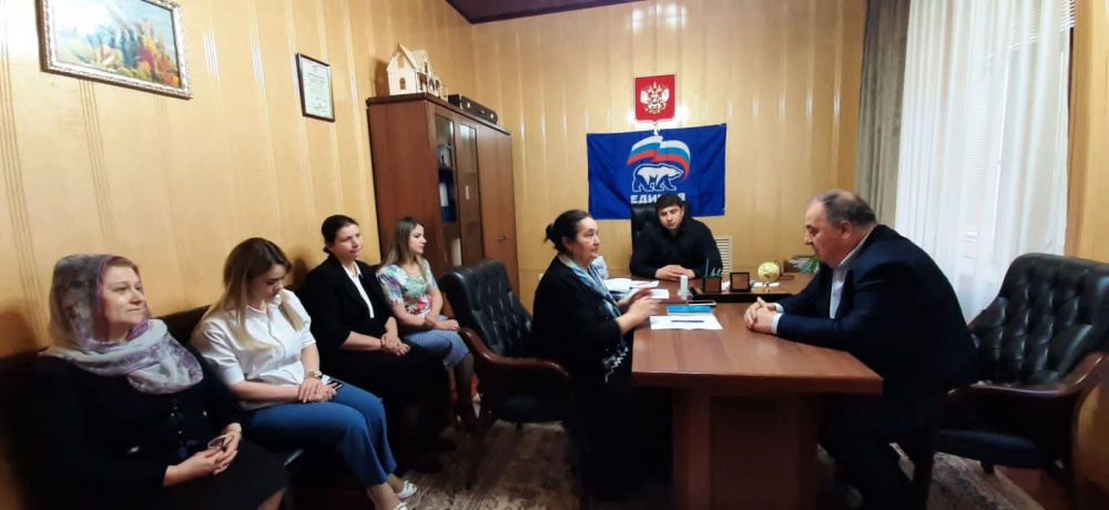 В рамках реализации письма ЦИК Партии «ЕДИНАЯ РОССИЯ» 13.05.2022 года в ГКУ РД УСЗН в МО «Хасавюртовский район» прошёл общественный прием по проблемам и вопросам граждан старшего поколения.Прием провели депутат Народного собрания Республики Дагестан заместитель председателя комитета по образованию и науки Руслан Ибрагимов, исполнительный секретарь местного отделения ВПП «Единая Россия» Арслаханова , и.о.директора ГКУ РД УСЗН в МО «Хасавюртовский район» Гаджиалиев Эльдар, начальник РУО Хасавюртовского района Кабардиев Крымсолтан. Помощь и поддержка людей старшего поколения была и остается приоритетным направлением нашей работы для пожилых людей очень важно живое общение – отметил Руслан Ибрагимов. В ряде сельских поселений и в территориальных учреждениях администрации Хасавюртовского района мы уже возобновили очные приемы граждан: рассказала Асият Арсланханова. Меры социальной поддержки оказание материальной помощи ветеранам; оформление пособий для ветеранов; обеспечение санаторного лечения и другие меры поддержки для нас являются одним из актуальных направлений в работе отметил и.о. директора ГКУ РД УСЗН в МО «Хасавюртовский район» Эльдар Гаджиалиев По словам, начальника РУО Хасавюртовского района Кабардиева Крымсолтана, практика приемов граждан на площадке приемной партии «Единая Россия» зарекомендовала себя как эффективный инструмент решения самых разных вопросов, которые беспокоят жителей республики.