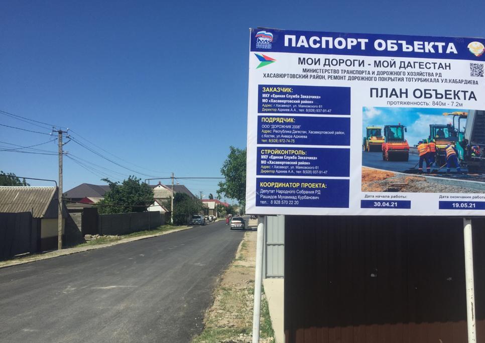 « В текущем году в районе заявлено и активно реализуется строительство и ремонт дорожного полотна восьми объектов с общей протяженностью 8409 м. в поселениях Аксай, Муцалаул, Кандаураул, Садовое, Сулевкент, Тотурбийкала, Казмааул. Все проводимые работы на контроле у Главы района Джамбулата Салавова. Реализация проекта « Мой Дагестан – мои дороги» заметно преображает инфраструктуру поселений, с качественным покрытием дорожного полотна » - отметил первый заместитель главы администрации района Багаутдин Мамаев.