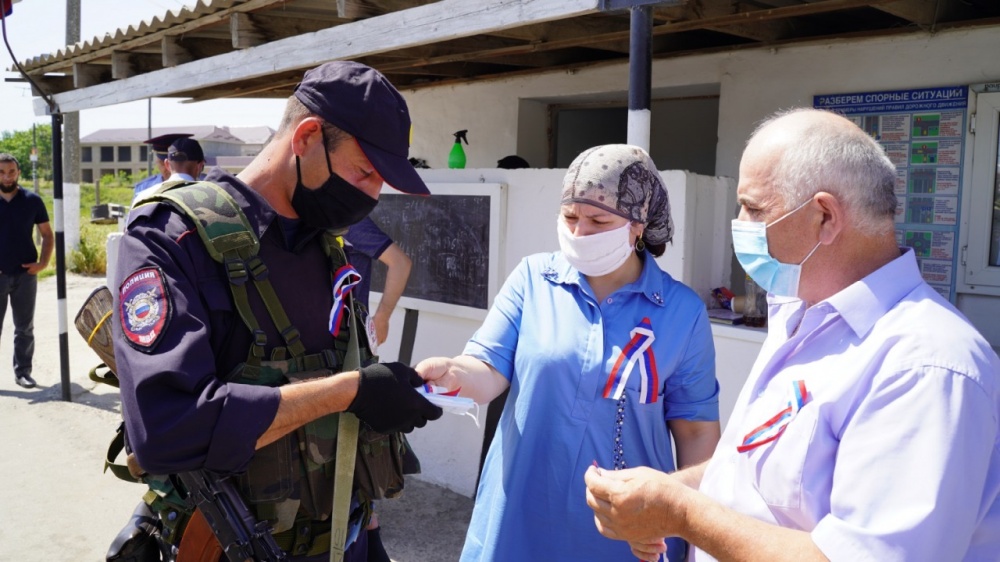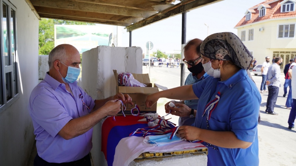 11 июня в рамках праздничных мероприятий, посвященных - Дню России, по поручению Главы района, Джамбулата Салавова, членом регионального штаба ОНФ по РД, Гебек Конакбиев и координатором молодежной организации ОНФ по Хасавюртовскому району Дженнет Адиловой, работниками отдела АТК района, на постах сотрудникам ОМВД РФ по Хасавюртовскому району и водителям автомашин, были розданы ленточки в цветах триколора и Флаги России. Для поддержки всероссийского праздника символические ленты также закреплены и на транспортные средства. Такие же акции прошли в поселениях района, в частности в селении Солнечное, в ходе торжественного открытия парка в рамках реализации федеральной программы « Комфортная городская среда». Вручая ленточки, участники акции вместе с волонтерами района также раздавали СИЗ. Стоит отметить, что при проведении акции были соблюдены все меры предосторожности в соответствии с рекомендацией Роспотребнадзора в сложившейся эпидемиологической ситуации.