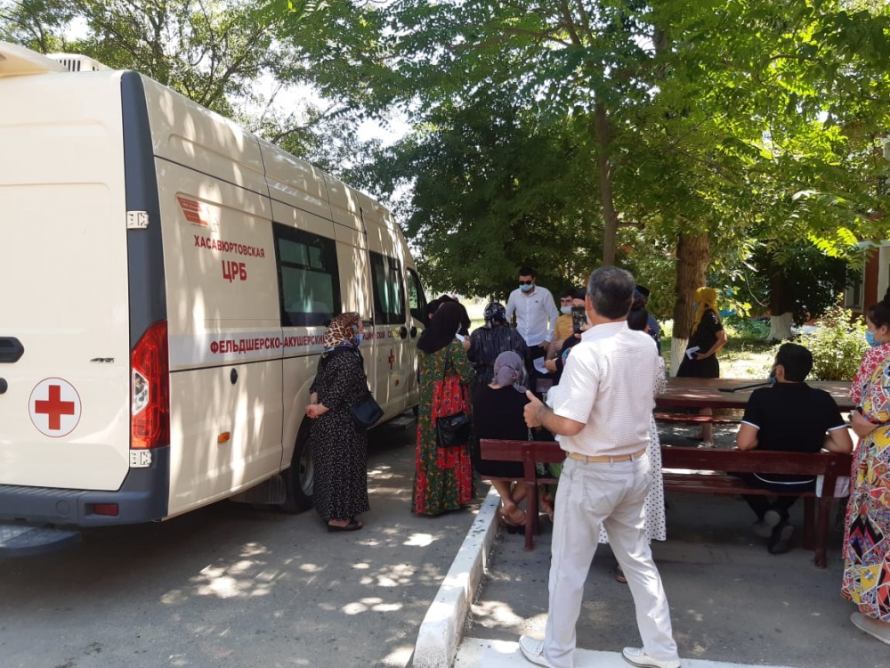 В населенных пунктах района с каждым днем наращиваются темпы вакцинации. Стоит отметить, что темпы вакцинации населения и госслужащих неуклонно растут и все поступающие вакцины используются 100 %. На текущий момент в здравоохранение района поступило очередная партия 3000 доз вакцины « Гам-Ковид – Вак». В связи с ростом числа желающих вакцинироваться и для удобства населения круглосуточно работает передвижной мобильный пункт. Данный мобильный пункт выезжает в села в соответствии утвержденного графика и в день может обслуживать боле 400 человек. Так сегодня мобильный пункт работает в крупном селении Аксай.