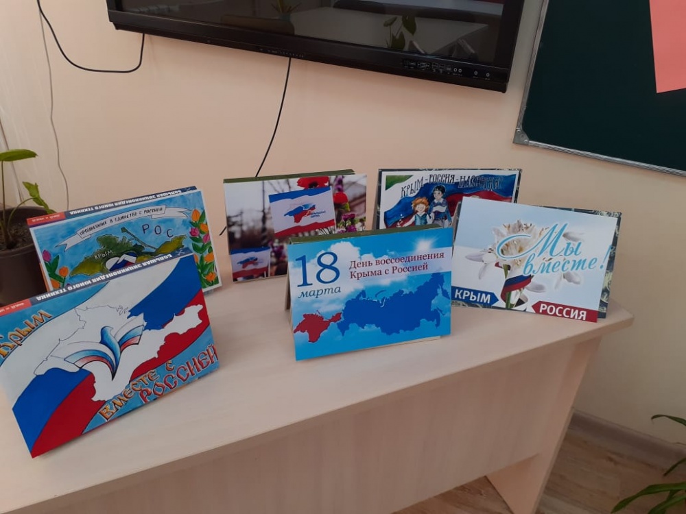 В рамках исторической даты присоединения Крыма к России в общеобразовательных учреждениях района, учреждениях культуры и библиотеках поселений идет Всероссийская патриотическая акция « Крым и Россия едины. Крымские окна », посвященная историческому событию - воссоединению России и Крыма, включающая в себя, размещение в соцсетях #Крымские окна триколоров России, рисунков, а также проведение в школах классных часов, виртуальных экскурсий, просмотры видеоролика «Здравствуй Крым», книжно – иллюстрированных выставок, в целях патриотического воспитания молодого поколения и гордости за свое Отечество. Педагоги, ответственные за уроки и мероприятия, рассказывают школьникам на внеклассных уроках об истории Крыма как части российской территории, с формированием гражданской позиции и воспитания у подрастающего поколения патриотизма и гражданственности, уважения к историческим значимым событиям. Ко всем урокам и мероприятиям школьные библиотекари оформляют книжные и фотовыставки, а в школьных музеях идут «Дни открытых дверей». Также на уроках особое внимание уделяется роли Крыма в Великой Отечественной войне и героической обороне Севастополя, где дети совершают увлекательный заочный экскурс по полуострову, знакомятся с достопримечательностями и географическими особенностями древнего полуострова. Мероприятие сопровождаются слайдами « Вместе навсегда », а также видеороликов «Крым – Россия – вместе навсегда», «Наш прекрасный Крым», «Достопримечательности Крыма ».