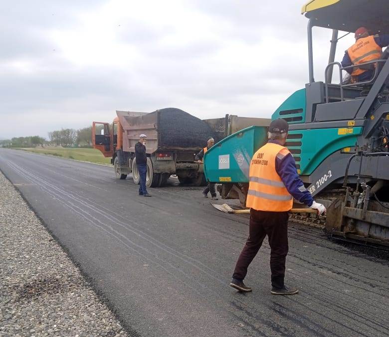 Работы начаты в установленные государственным контрактом сроки и ведутся в строгом соответствии с календарным графиком производства работ. По состоянию на текущее время на объекте проведены работы по разборке изношенного участка асфальтобетонного покрытия на протяжении 1,5 км с устройством нового основания из песчано - гравийно щебеночной смеси, устройству выравнивающего слоя и покрытия из асфальтобетонной смеси на протяжении 2,0км. Кроме того, параллельно ведутся работы по восстановлению замляного полотна и укладке бордюрных камней для устройства пешеходного тротуара. На объекте задействованы более 10 единиц дорожной техники. Работы на объекте ведутся с опережением графика на 20%. Завершение работ в соответствии с Госконтрактом предусмотрено в сентябре текущего года. С учетом начатых темпов производства работ работы будут завершены с опережением сроков на 1-1,5 месяцев.