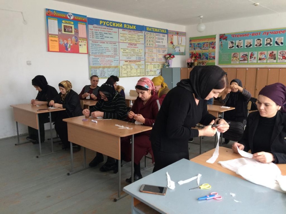 « В рамках пунктов Указа Главы РД Владимира Абдуалиевича Васильева, о недопущении распространения короновирусной инфекции, в череде профилактических мероприятий, проводимых в районе, приняли решение задействовать, с учетом технологических возможностей, производство марлевых повязок, рекомендованных Минздравом РД, где в первую очередь ими будут обеспечены люди пожилого и преклонного возраста, в категории от 40 до 60 и от 60 до 80 лет, включая пенсионеров. Производство начато на начальном этапе в 4 пунктах – это районный центр культуры, двух новых современных школах селений Карланюрт и Адильотар, а также Доме детского творчества. В мероприятиях привлекаются работники здравоохранения, учреждений образования, культуры, волонтёры и добровольцы» - подчеркнул Глава района, Джамбулат Салавов.
