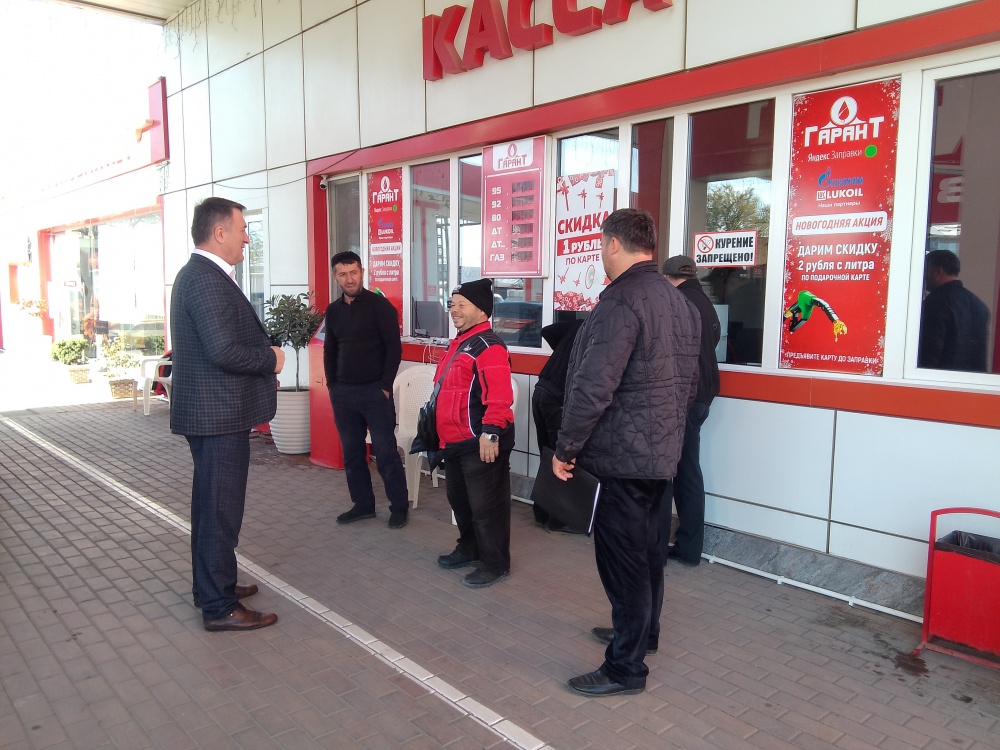 В рамках протокольных поручений Главы МР Арсланбека Алибекова, Межведомственная рабочая группа по укреплению налоговой дисциплины, ликвидации задолженностей и увеличению доходной части бюджета, во главе с заместителем главы администрации Нурулой Муртазалиевым, с участием работников ФНС №17 РД по Хасавюртовскому району и управления экономики провели очередные рейдовые мероприятия по объектам АЗС и АГЗС. В ходе рейдов также были рассмотрены вопросы заключения трудовых договоров с работниками АЗС, приведение в порядок категории земель под АЗС и оформления зданий.