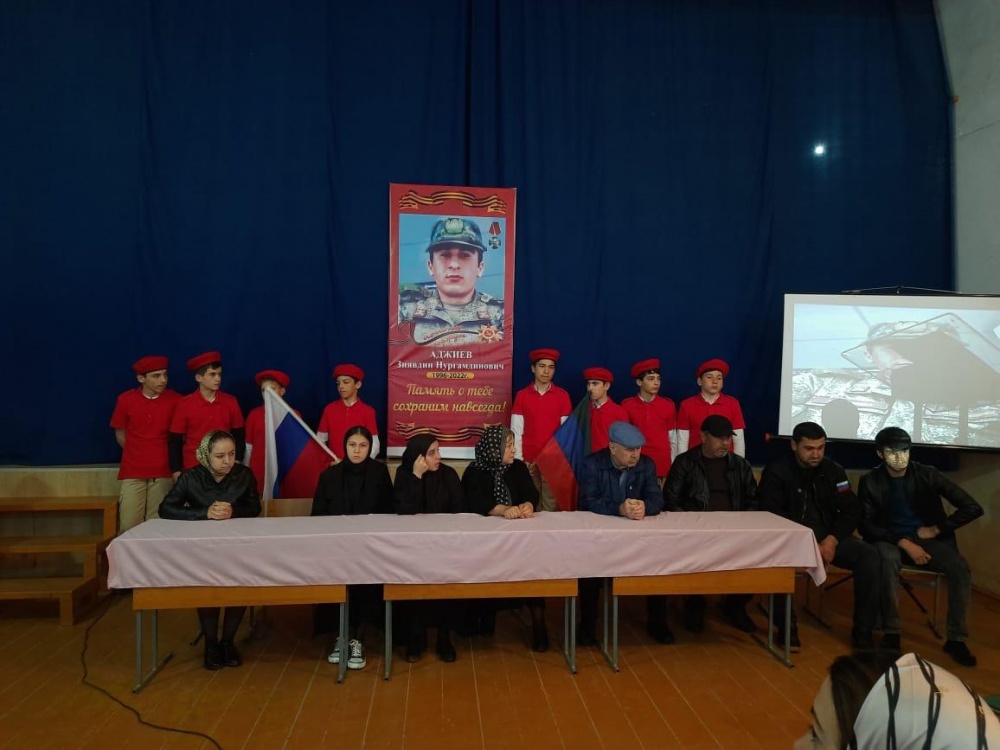 7 мая в МБОУ «Ботаюртовская СОШ им. Н.П. Жердева» прошло Памятное мероприятие, посвящённое выпускнику МБОУ «Ботаюртовская СОШ им. Н.П. Жердева», Аджиеву Зиявдину, героически погибшего в ходе спецоперации на Украине, весной этого года. На мероприятии присутствовали родители, ближние родственники, друзья Зиявдина.