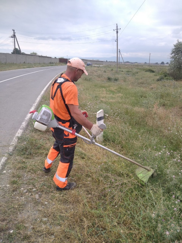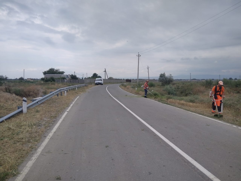 АО филиал РСУ Хасавюрт проводит благоустройство республиканских а/д Хасавюрт Бабаюрт к а/д с. Абдурашитотар, в том числе скашивания травы вокруг МБО и сигнальных столбиков, кашивания травы вдоль обочин и др.