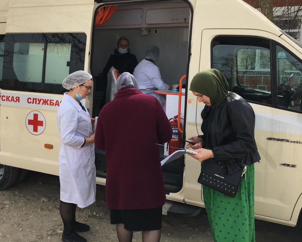 В Хасавюртовском районе массовая вакцинация жителей и работников госучреждений в рамках здравоохранительных мероприятий по общественной иммунизации активно продолжается. Вакцинация проходит на базе ЦРБ района, а также в медучреждениях крупных поселений Аксай и Эндирей, В связи с неуклонным ростом количества желающих вакцинироваться, здравоохранение района подключило и передвижной мобильный пункт по вакцинации. В рамках своего предназначения, мобильный пункт по вакцинации, способен мобильно передвигаться и посещать населенные пункты района. Так в выходные передвижной мобильный пункт по вакцинации, где в специально оснащенной автомашине, жители села и близлежащих поселений могут провести медицинский осмотр и сделать прививку, работал в селениях Сивух и Кокрек. Стоит отметить, что значительно растет количество желающих вакцинироваться нашего дорогого старшего поколения, так как именно эта возрастная группа наиболее уязвима для коронавируса и для них единственным способом защиты от коронавирусной инфекции является вакцинация» - отметил первый заместитель главы администрации района Багаутдин Мамаев.