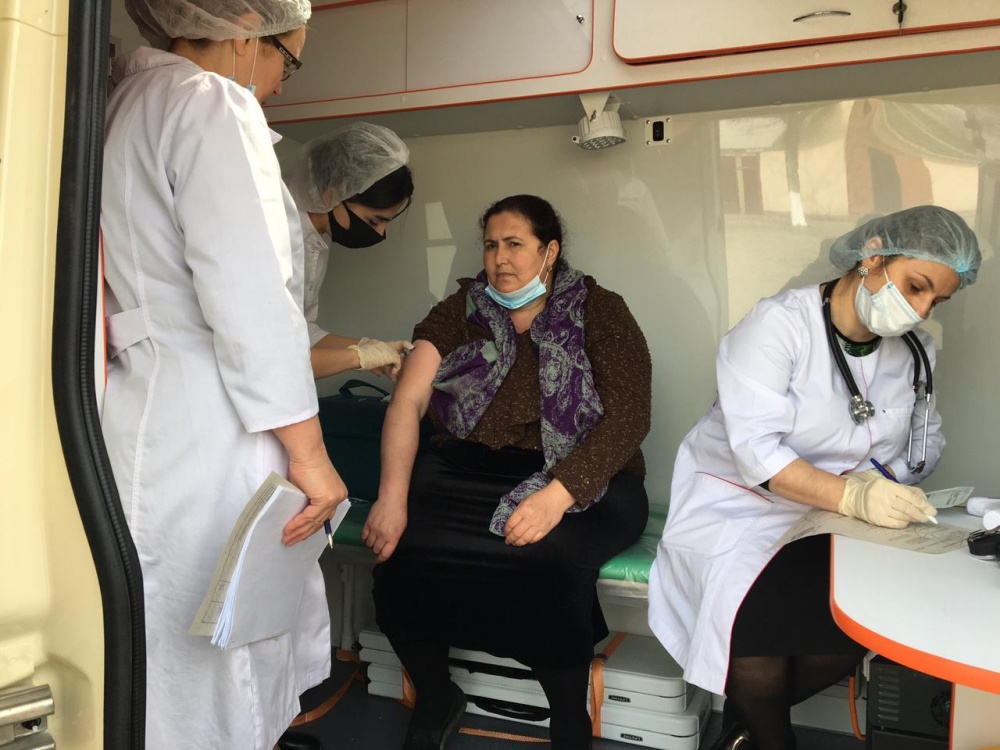 В Хасавюртовском районе продолжаются здравоохранительные мероприятия по вакцинации жителей, работников госучреждений и отдельных групп граждан по эпидемическим показаниям, в рамках мер по общественной иммунизации. Напомним, ранее в ЦРБ района поступила очередная партия вакцин Гам КОВИД Вак. Стоит отметить, что темпы вакцинации населения и госслужащих неуклонно растут, отрадным фактом является динамика роста желающих вакцинироваться среди людей за 60, для которых предусмотрены меры социальной поддержки. Для охвата и удобства жителей задействованы передвижные мобильные пункта, охватывающие поселения района, где в специально оснащенной автомашине, жители села могут провести медицинский осмотр и сделать прививку. Это очень удобно, комфортно и значительно сокращает время и усилия населения, так как количество желающих провести вакцинацию в селах неуклонно растет. Радует факт роста желающих вакцинироваться людьми старшего возраста, так как именно эта возрастная группа наиболее уязвима для коронавируса и для них единственным способом защиты от коронавирусной инфекции является вакцинация » - отметил главврач ЦРБ Шамиль Минатуллаев.