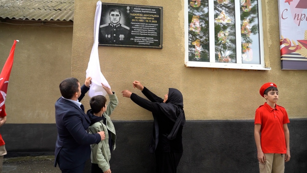 В ст Карланюрт, средней общеобразовательной школе присвоено имя погибшего в зоне СВО подполковника Гаджиева Абусупьяна Ибрагимовича и сегодня состоялось торжественное мероприятие в честь этого события в ходе которой была открыта Мемориальная доска. На мероприятии приняли участие депутат НС РД Руслан Ибрагимов, Военный комиссар города Хасавюрт, Хасавюртовского и Новолакского районов Абакар Давудов, председатель районного Собрания депутатов Магомед Лабазанов, заместители главы администрации муниципального района Нурула Муртазалиев и Исмаил Шаипов, глава села, актив, родные и близкие Гаджиева Абусупьяна, волонтеры.