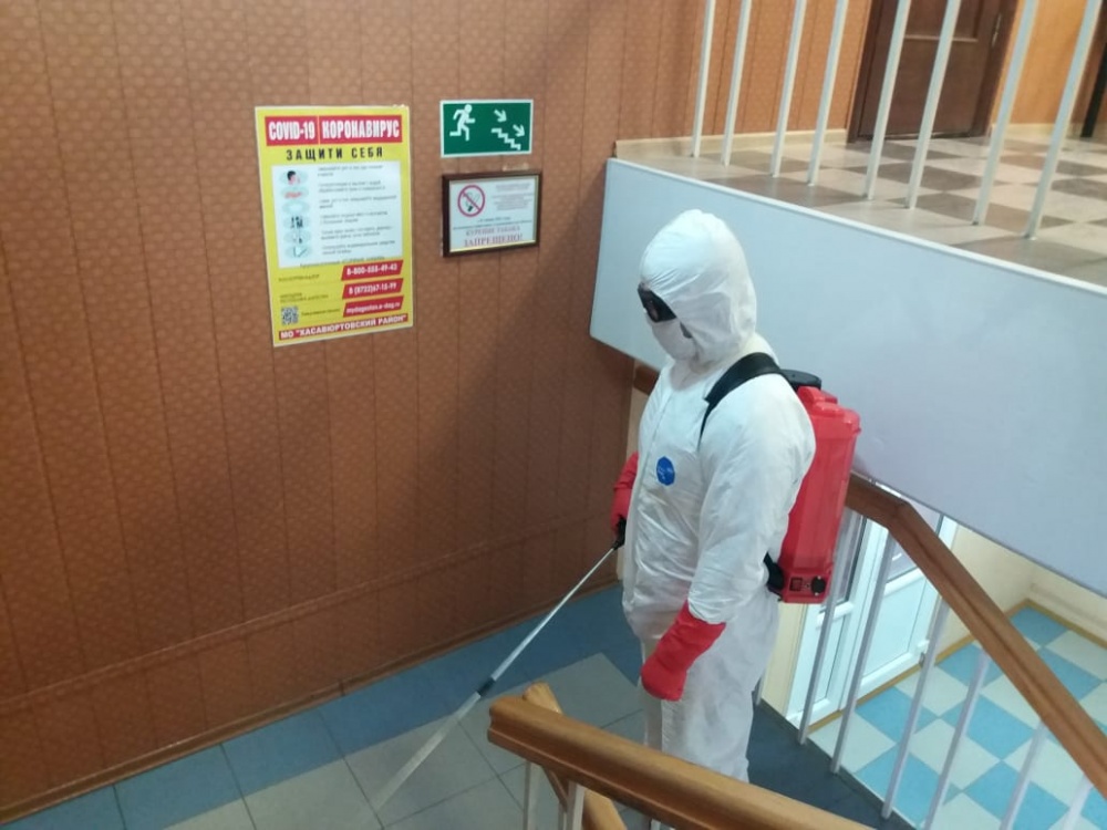 В зданиях и служебных помещениях территориальных учреждений, организаций и ведомств Хасавюртовского района продолжаются дезинфекционные мероприятия. Так накануне очередные профилактические санэпидемические мероприятия провели, в здании и служебных помещениях администрации района, Прокуратуры, ОМВД, территориального МФЦ, Центральной районной больницы, организациях ТЭК и др.