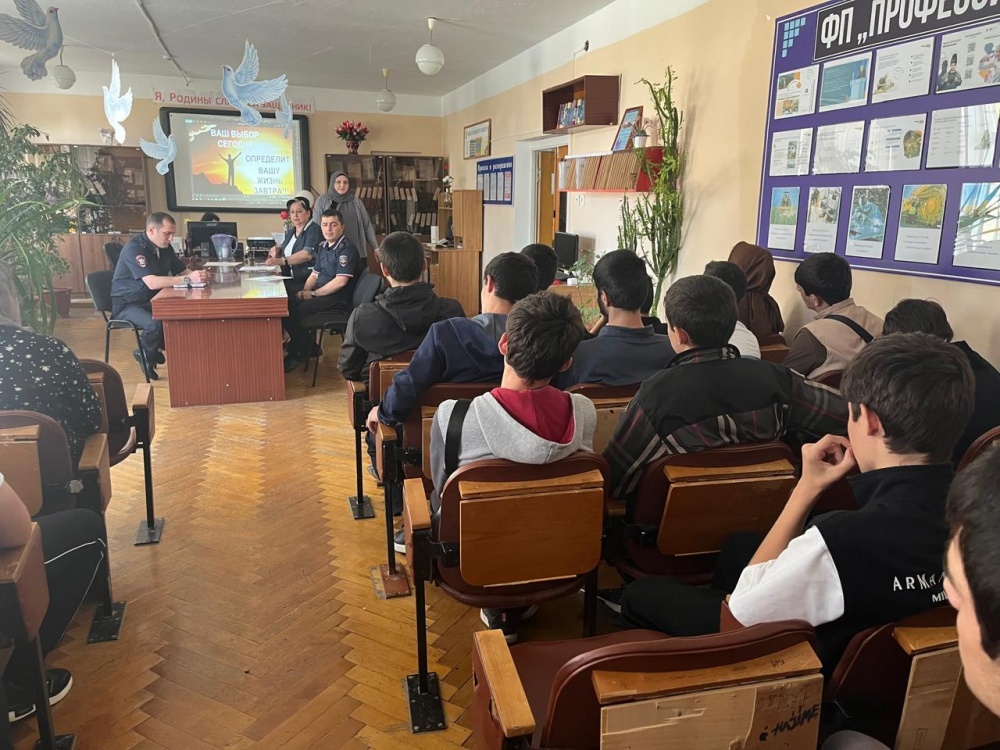 В рамках профилактической операции «Твой выбор», направленной на предупреждение подростковой преступности и предотвращения вовлечения несовершеннолетних в деструктивную деятельность, а также ОПМ «Курорт-2025», которое проводится в целях реализации комплекса мер по обеспечению правопорядка и общественной безопасности в период летнего курортного сезона с участием организованных групп несовершеннолетних на железнодорожном, воздушном и водном транспорте по маршруту следования к местам отдыха и обратно, в Хасавюртовском районе проводятся тематические мероприятия и беседы со студентами.