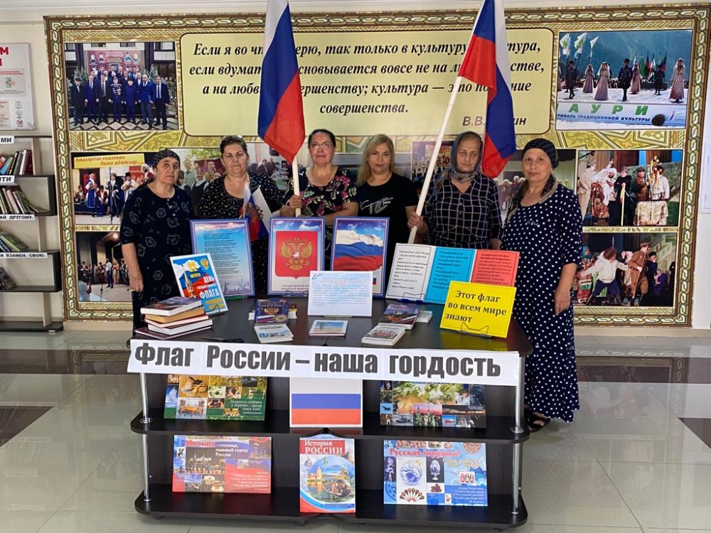 « 22 августа - это день объединяет нации, выражает дух народа, символизирует его славное прошлое, настоящее и будущее. В стремлении сделать Россию единым, сильным и могучим Государством» - отметил Абдула Абдулаев. Дале заведующая метод.отделом ЦБС Пашаева Наталья отметила, что во всех библиотеках сел были проведены массовые мероприятия, посвященные Дню Государственного флага Российской Федерации на которых побывали главы сел, директора СДК, работники спорт клуба, молодежь села. Проведены часы информации, тематические и информационные выставки «Символ доблести и народной гордости», «Триколор моей страны», «Гордо реет над страной наш Российский флаг родной». Мероприятия: «Овеянный славой Российский Флаг», «Это – моя Родина» Выставки: «Во флаге – слава страны», «Флаг России мира строение», «Российский триколор», «День флага в России».