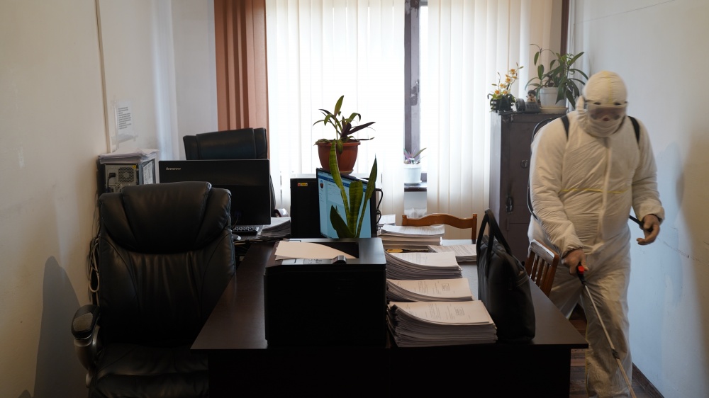 Накануне в администрации района, социальных, ведомственных объектах, организациях и учреждениях района, а также поселениях, прошли очередные, плановые дезинфекционные мероприятия. Наряду с объектами и прилежащей территории, дезинфекции подверглись также служебные и рабочие кабинеты. Также на граничащих круглосуточных постах района продолжается дезинфекция автотранспорта.