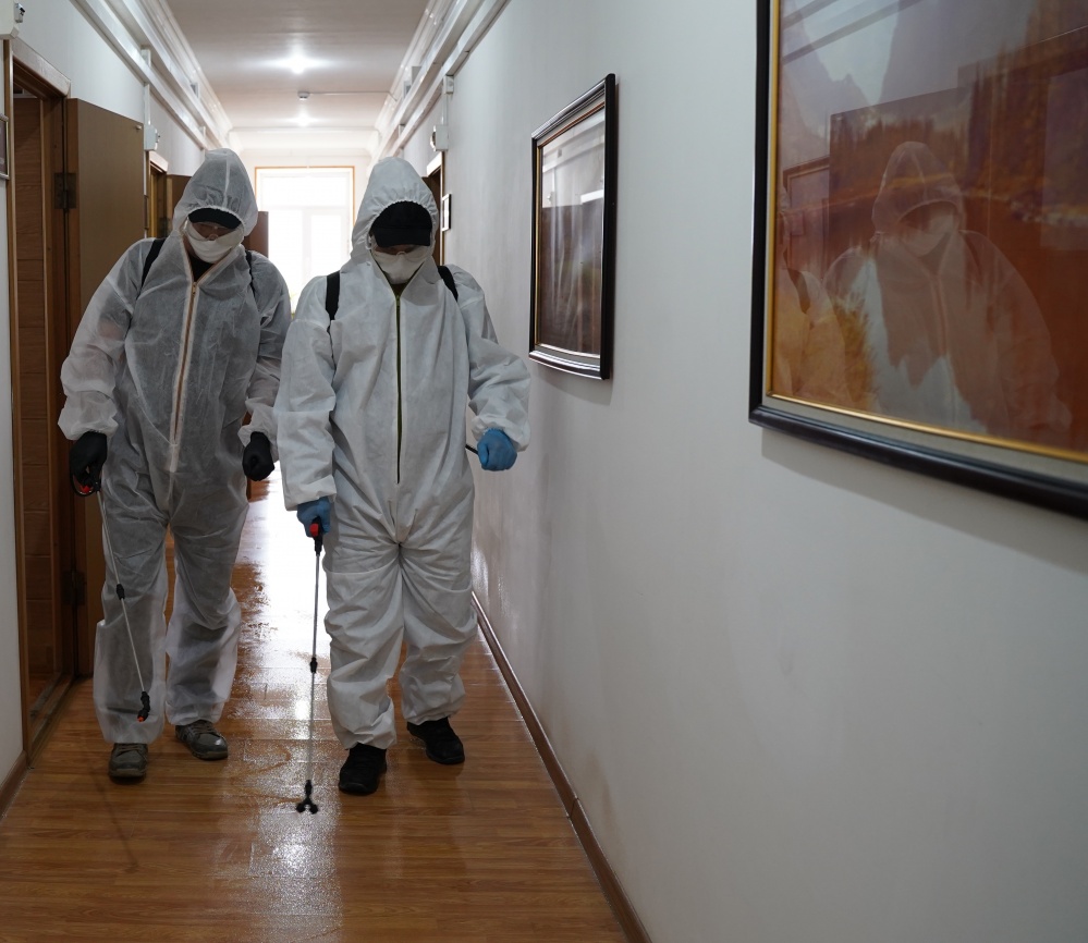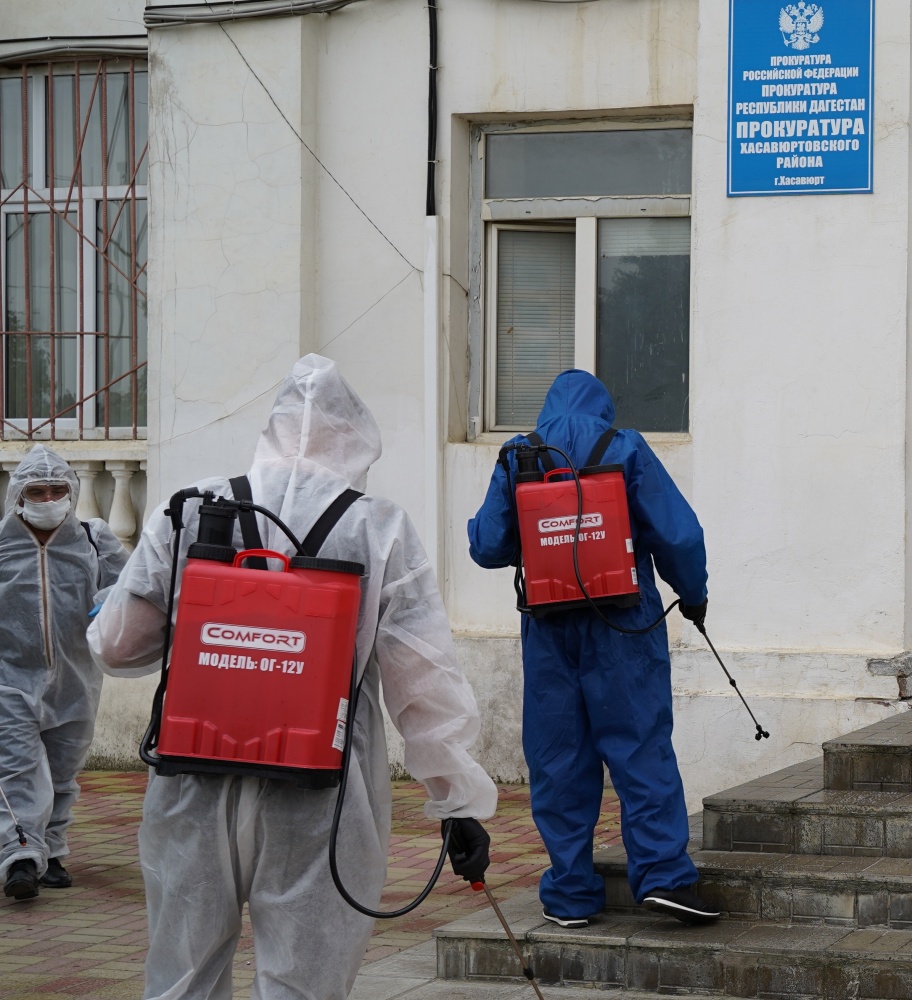 В выходные на территориях и помещениях объектов ОМВД и Прокуратуры района, а также территориальных республиканских и федеральных объектах провели очередные дезинфекционные мероприятия вирулицидного действия, по профилактике недопущения распространения коронавирусной инфекции.