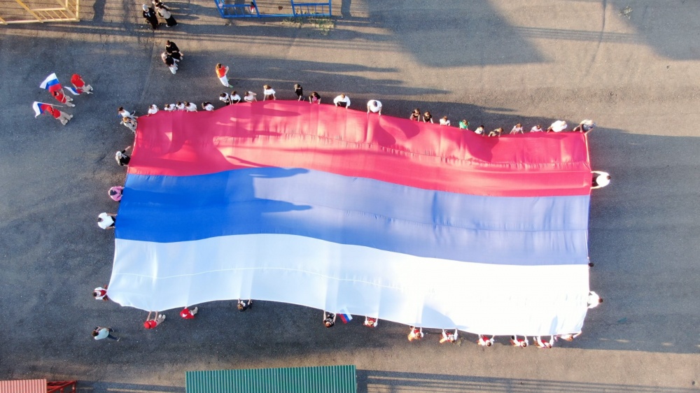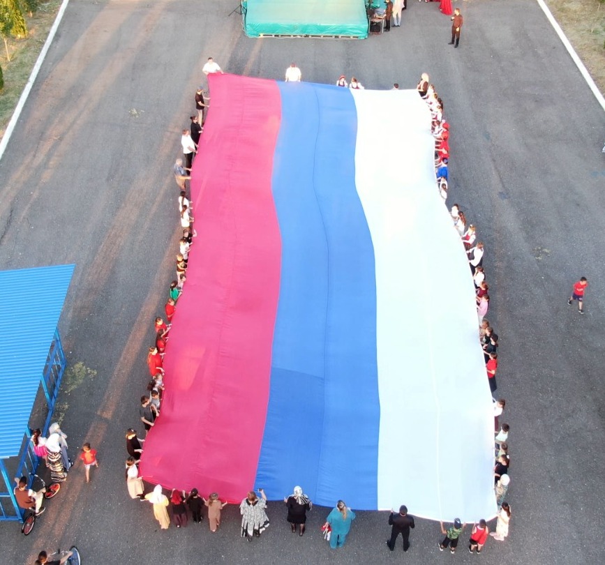 В Хасавюртовском районе в честь праздника по традиции развернули государственный флаг России