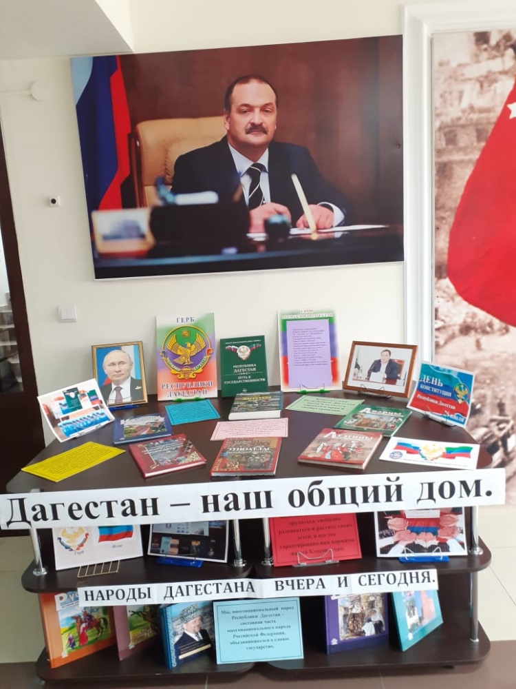 В ЦТКНР, методическим отделом ЦБС в преддверии знаменательной даты, ко Дню Конституции Республики Дагестан, прошел круглый стол, с книжно –иллюстрированной выставкой : «Дагестан – наш общий дом». В работе Круглого стола приняли участие работники библиотечной системы ,ЦТКНР и Управления культуры. В своем выступлении, директор ЦБС Зульфия Абасова отметила, что что 26 июля Республика Дагестан приняла Основной закон – Конституцию РД и закрепила государственный статус единства и целостности Дагестана, сформировав демократические институты, гражданское общество и системы местного самоуправления. День Конституции РД – это общенациональный праздник нашего единства, сплоченности, дружбы и уважения друг к другу. Конституция закрепила статус Дагестана как единой, неделимой части Российской Федерации. Основной Закон РД, способствовал сохранению порядка и стабильности в Дагестане, закрепив исторически сложившееся единство народов Дагестана . В продолжении ,Зав.отделом ЦБС Асевова Рабият ознакомила присутствующих с планом проведения праздника Дня Конституции Республики Дагестан библиотеках района намечено проведение массовых мероприятий в форме Книжных выставок: « Дагестан – наш общий дом»»,« Мой многоязычный Дагестан» ,« Наши права и обязанности»,« Закон для всех и для каждого» .Часы истории: « Легендарная земля Дагестана – в ней славы больше чем земли»,« Я люблю свой Дагестан»,« Конституция- свобода человека и гражданина» , « Конституция и мы!» Познавательно – правовой час: «Горжусь тобой мой Дагестан»,«Дагестан - наш общий дом»,« Дагестан, слово о тебе», «Мой гимн, мой флаг, мой Дагестан»,« Ты не прав, если не знаешь своих прав». Виртуальные путешествия: «Мой Дагестан богат историей». Правовой час: « Что для меня значит Конституция Республики Дагестан»,«Я и мои права»,« Законы и народ», Тематические вечера :« Очаг мой Дагестан»,« Основной закон нашей республики». Беседа – диалог: «Я имею право»,Патриотический час:« Нерушимый закон».Информационный час:« Цвети мой край – республика моя» и т.п.