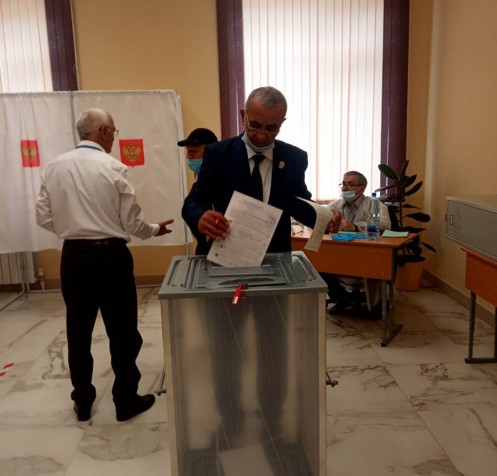 В Хасавюртовском районе «Заслуженный учитель РД» Муратбек Айдемиров в ходе голосования отметил важность выборов 2021
