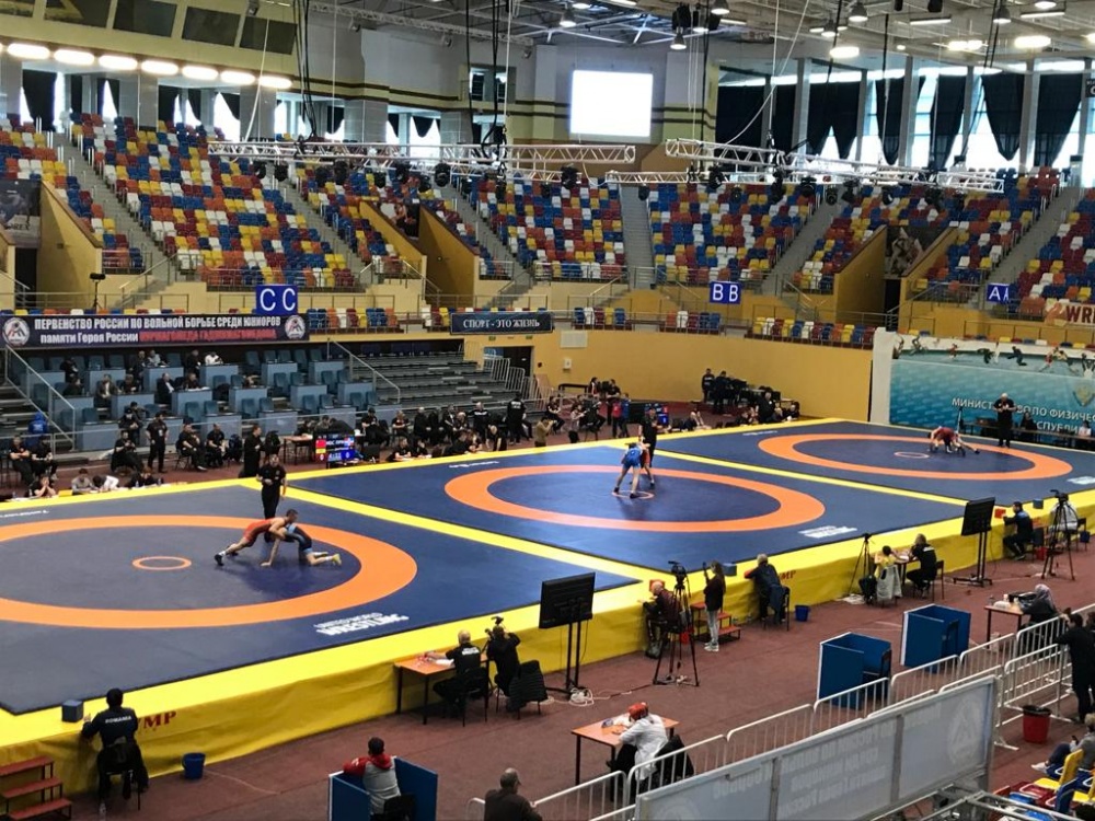 / В Каспийске проходит первенство России по вольной борьбе среди юниоров памяти Героя России Нурмагомеда Гаджимагомедова