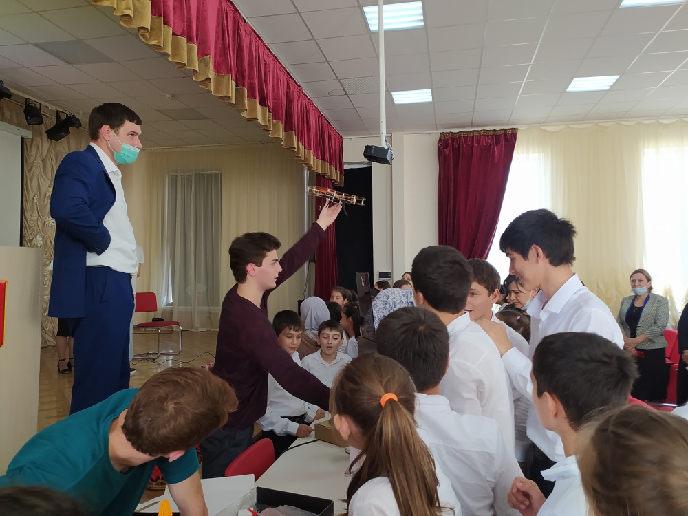 «Главная цель мобильного « Кванториума », познакомить школьников с технологиями, инженерными профессиями, заинтересовать исследовательской и изобретательской деятельностью. Это огромный шанс для каждого ребенка, независимо от места жительства и учебы, заниматься на современном высокотехнологичном оборудовании инженерным творчеством и воплощать свои проекты в жизнь. Профориентация – это еще одна задача, которую поможет реализовать мобильный «Кванториум »,- отметил начальник районного Управления образования Крымсолтан Кабардиев. На мероприятие были приглашены педагоги из Махачкалы. Каждый из педагогов подготовил для детей презентацию своего квантума, подготовили мастер-классы. Перед учащимися выступил Шкурко Артем Сергеевич, руководитель Мобильного технопарка «Кванториум». Артем Сергеевич рассказал детям, о том, что детский технопарк «Кванториум» – это специально организованная площадка, оснащенная высокотехнологичным современным оборудованием, на базе которой проводится обучение школьников по целому ряду научных и инженерно - технических направлений.