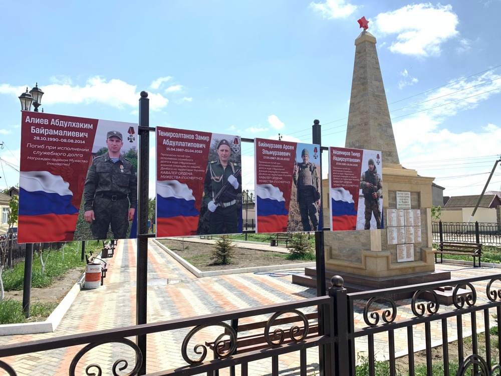 В поселениях Хасавюртовского района ко Дню Победы продолжается установка панно и стен Памяти с портретами Героев ВОВ а также участников СВО