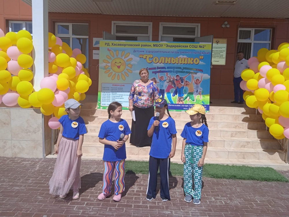 3 июля 2023 года прошло торжественное открытие 2 смены в пришкольных лагерях дневного пребывания детей МО «Хасавюртовский район»: «Жемчужина», открытый на базе МКОУ «Карланюртовская СОШ им. А.Д. Шихалиева», «Олимп», открытый на базе МКОУ «Кемсиюртовская СОШ», «Солнышко», открытый на базе МКОУ «Эндирейская СОШ № 2 им. А.А. Алиханова», «Феникс», открытый на базе МКОУ «Эндирейская СОШ № 3» и «Маяк», открытый на базе МКОУ «Аксайская специальная (коррекционная) общеобразовательная школа – интернат VIII вида». Смена, включающая оздоровительные, культурно-массовые мероприятия, игры на свежем воздухе и мастер-классы, продлится 21 день. Мальчики и девочки весело, интересно и с пользой для здоровья проведут почти месяц школьных каникул. Первый день лагерной смены начался с поднятия флага РФ под гимн РФ. Ребята с нетерпением ждали открытия лагеря. В программе работы лагеря много интересных и увлекательных мероприятий. После сбора детей, провели торжественную линейку. Дети ознакомились с правилами поведения в лагере и с правилами техники безопасности. Далее ребята окунулись в творчество: представили название своего отряда, девиз, речёвку, эмблему, музыкальные номера. Они с удовольствием принимали участие в конкурсах и играх. Лагеря открыты в целях создания досуга для детей в летнее время. В них работают опытные и очень ответственные вожатые. Созданы все условия для комфортного нахождения детей в лагере. Дети и родители очень довольны. Каждый получил от праздника только хорошее настроение. На открытии лагерей приняли участие родители, работники УО, главы сельских поселений, общественные деятели и приглашённые гости. В списки детей в лагеря дневного пребывания в первую очередь включены дети из семей, которые находятся в тяжелой жизненной ситуации, участников СВО, дети из многодетных семей, дети-сироты.