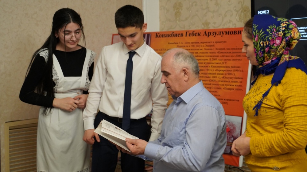 В свою очередь, Гебек Конакбиев, охотно рассказал детям о творческих планах, отметив, что уже скоро в Дагестанском книжном издательстве выйдет его новая книга под названием «Тайна золотого браслета», а на русском языке повесть «Две половины одного мира» и книга стихов. Также каждому ученику были подарены книги с именной подписью.