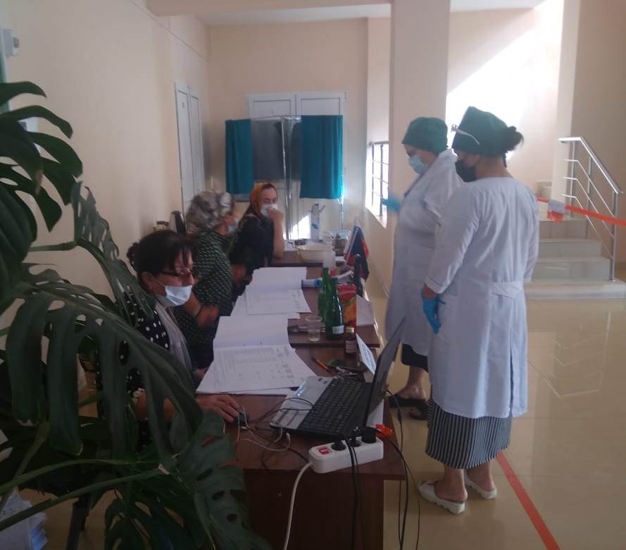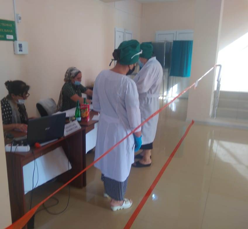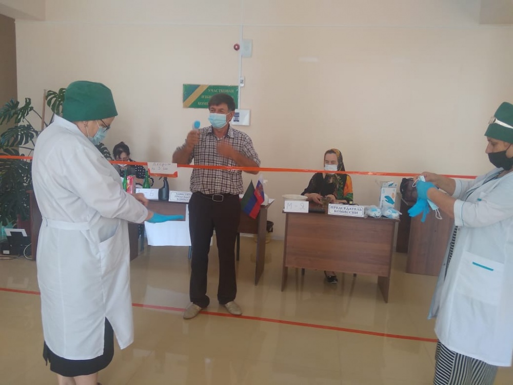 « Особое внимание уделяется процедуре голосования – обязательный температурный контроль, социальная дистанция, разведение  потока голосующих на  входе,  строго соблюдена  санитарная  дистанция  между членами избирательных комиссий, участниками голосования, наблюдателями. На постоянной основе дежурят работники здравоохранения района » - отметил главврач ЦРБ Шамиль Минатуллаев.