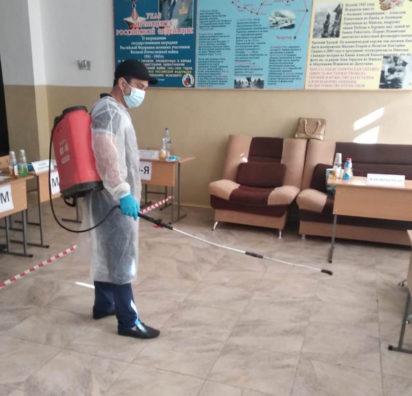 В рамках безопасного проведения выборов каждые 2 часа на всех 63 участках для голосования Хасавюртовского района проводится дезинфекция и санитарная обработка
