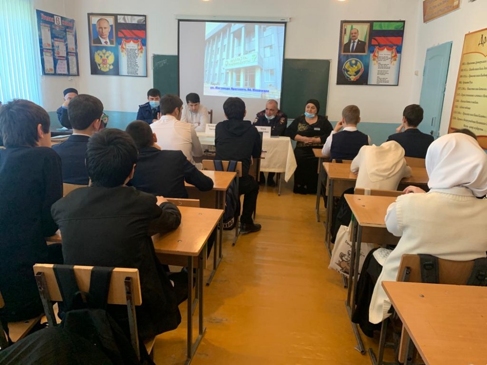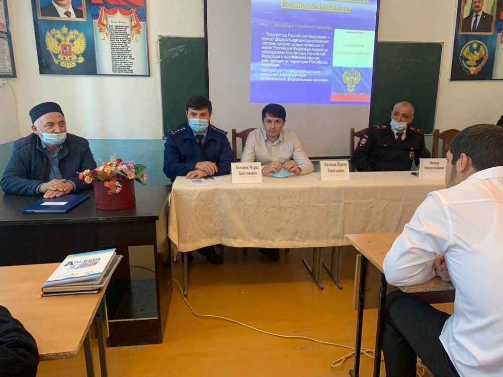 Накануне, в рамках мероприятий по профилактике правонарушений несовершеннолетних в Могилёвской школе прошла встреча учащихся старших классов с помощниками прокурора Хасавюртовского района Османовым Мурадом и Магомедовым Ибрагимом по теме «История развития прокуратуры. Правовая культура человека». На мероприятии присутствовал и участковый села Магомедов Нуцалхан. На встрече до подростков доведена информация об уголовной и административной ответственности несовершеннолетних за совершение уголовно-наказуемых деяний и административных правонарушений. В ходе беседы на конкретных примерах учащимся разъяснены основные принципы уголовного закона, в том числе о неотвратимости наказания. Учащиеся школы были проинформированы о деятельности органов прокуратуры в защите прав человека, в особенности несовершеннолетних, о проводимой работе по поддержанию стабильности в обществе, повышению правовой культуры. В ходе проведения беседы подросткам разъяснялась необходимость соблюдать общественный порядок, уважать права иных лиц, и не допускать хулиганских действий, как в общественных местах, так и в быту, не совершать преступлений и иных правонарушений. Одновременно несовершеннолетним указывалось на необходимость руководствоваться в своих действиях нормами закона и морали, необходимости продолжения обучения и ведения здорового образа жизни. Помощники прокурора также остановилась на вопросе профилактики проявлений экстремизма. Она разъяснила, что такое экстремизм и что такое терроризм, чем они различаются, какие последствия несут они для государства в целом и для человека в частности. Объяснила подросткам, что действия экстремистского и террористического характера уголовно наказуемы и что несовершеннолетний возраст не является смягчающим обстоятельством.