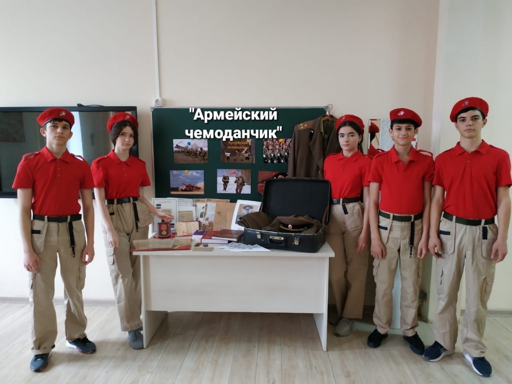 В рамках патриотических мероприятий ко Дню защитника Отечества в школах Хасавюртовского района проходит акция «Армейский чемоданчик 2021», которая объединила школы района, реализующие проекты и программы РДШ. В рамках акции проходят классные часы, Уроки мужества, экскурсии в школьные музеи и в краеведческие музеи. Мероприятиям предшествовала кропотливая работа. В течение недели в классных коллективах шел сбор предметов быта и досуга членов своей семьи, прошедших срочную или профессиональную службу (дембельских альбомов, солдатской формы, значков, удостоверений, музыкальных инструментов). Затем данные предметы собирались в настоящий либо импровизированный армейский чемодан.