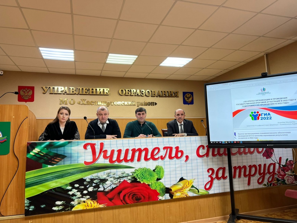 Накануне, начальник Управления образования Крымсолтан Кабардиев провел расширенный семинар-совещание с руководителями общеобразовательных организаций Хасавюртовского района по актуальным вопросам системы образования.Открыл совещание с обсуждения вопросов государственной итоговой аттестации в 9-х и 11-х классах в 2023 году. В очередной раз подчеркнул о необходимости готовиться к ГИА. Отметил, что это основной показатель качества знаний образовательной организации и района. Далее обсудили следующие вопросы - Итоговое собеседование по русскому языку в 9 классах, База выпускников 9-х и 11-х классов, Организация горячего питания. Разработка нового двухнедельного меню. Прохождение курсов работниками пищеблоков. О получении новой аккредитации в связи с переходом на МКОУ. Итоги республиканской коллегии. «До 1 февраля формируется база выпускников ОГЭ и ЕГЭ, идёт сбор документов на ЕГЭ выпускников прошлых лет. До 1 марта нужно определиться с выбором предметов для выпускников 9-х классов», - отметил заместитель начальника, муниципальный координатор ГИА-2023 Умардибир Магомедов.