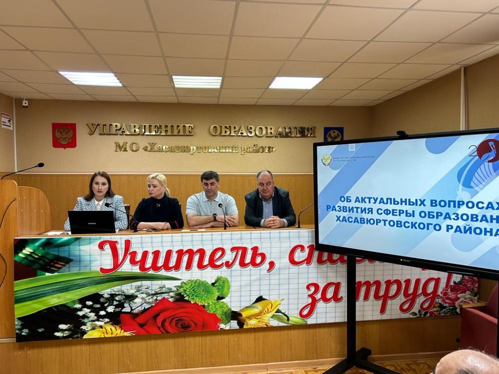 Состоялась очень продуктивная встреча, в ходе которого обсудили все аспекты развития системы образования Хасавюртовского района, подчеркнув положительную и отрицательную деятельность. Далгатова А.О. подробно провела полный анализ развития сферы образования Хасавюртовского района, а именно комплекс процедур оценки качества образования и государственной итоговой аттестации: всероссийские проверочные работы, национальные исследования качества образования, диагностические работы по оценке функциональной грамотности, единый государственный экзамен, основной государственный экзамен, Всероссийские олимпиады школьников, мониторинг реализации мероприятий муниципального плана повышения качества образования, воспитательную работу и т.д.. Павлюченко Е.Н. в своём выступлении рассказала о проводимой работе в депутатском корпусе республики Дагестан по оказанию поддержки в адрес педагогов, подчеркнула о важности воспитательной работы в образовательной деятельности учреждений в плане участия на различных акциях, конкурсах, форумах по патриотическому воспитанию подрастающего поколения и отметила важную (главную) роль педагога в развитии и становлении личности ребёнка для дальнейшего успешного совершенствования. Ибрагимов Р.М. призвал руководителей образовательных организаций в своей работе делать акцент на воспитание настоящих патриотов, защитников Родины, учитывая сегодняшнюю обстановку в стране.