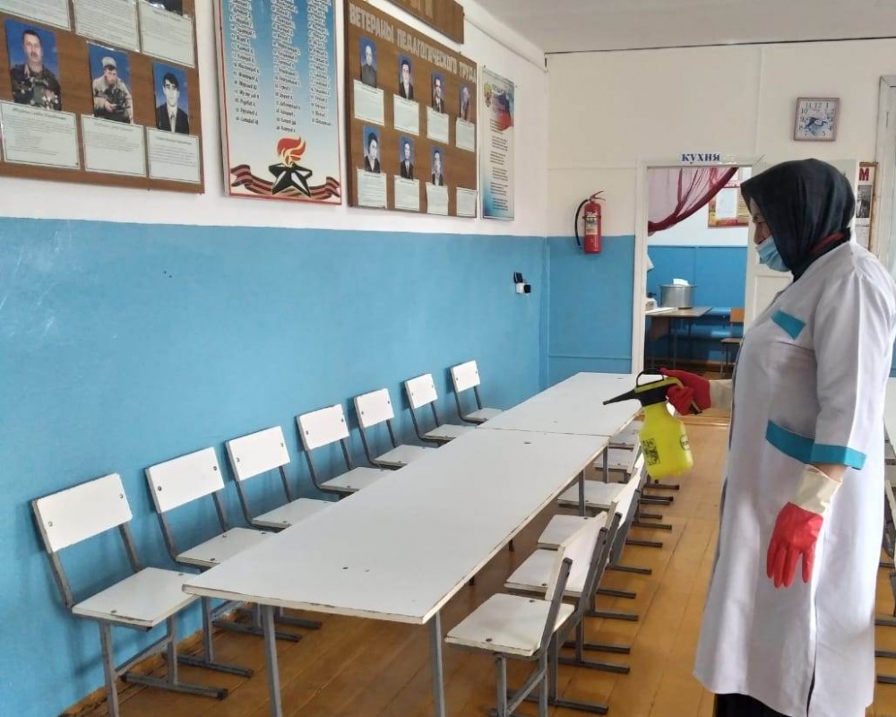 Накануне в селении Аджимажагатюрт провели очередные дезинфекционные мероприятия общественных мест, социальных объектов и школы села