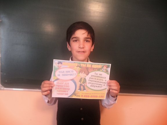 Так В МБОУ «Ичичалинская СОШ им. Б.Г. Битарова» в ходе урока учащиеся узнали, что телефон доверия − это служба, в которую абсолютно анонимно может обратиться любой человек, попавший в беду или в сложную жизненную ситуацию. У каждого человека, взрослого или ребёнка в жизни могут случиться проблемы. В такой ситуации любому из нас нужна поддержка и помощь. Где найти умного, доброго, профессионального человека, который выслушает, поймёт и поможет найти выход даже там, где его, казалось бы, нет? Ответ на этот вопрос сегодня должен знать каждый ребёнок. Каждый школьник должен быть уверенным в том, что, если с ним случится беда, он всегда может обратиться за помощью в службу «Детский телефон доверия», и там его обязательно выслушают и поймут, помогут найти верное решение. Было отмечено о преимуществах телефона доверия – анонимность, возможность рассказать о своих проблемах и выслушать опытного психолога, рассказать о возможной зависимости от компьютерных игр, табака, алкоголя, наркотиков и других вопросах, которые беспокоят детей.